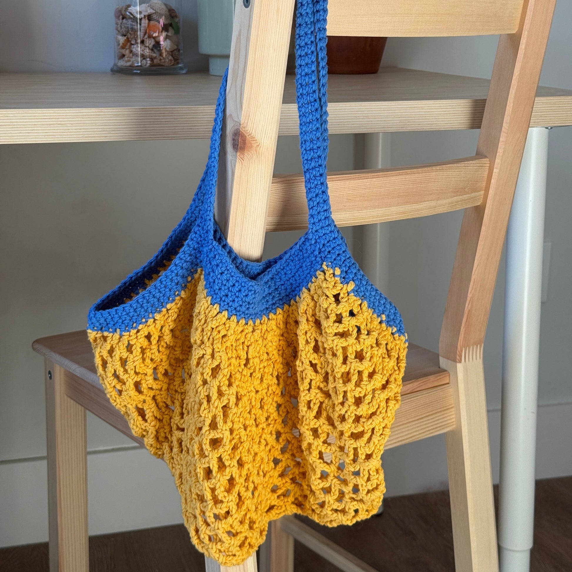 This hand-crocheted market bag is designed to stretch and expand, it’s perfect for grocery runs, farmers markets, or anything in between. Made from cotton, its a eco-friendly all purpose tote that is up for any adventure.