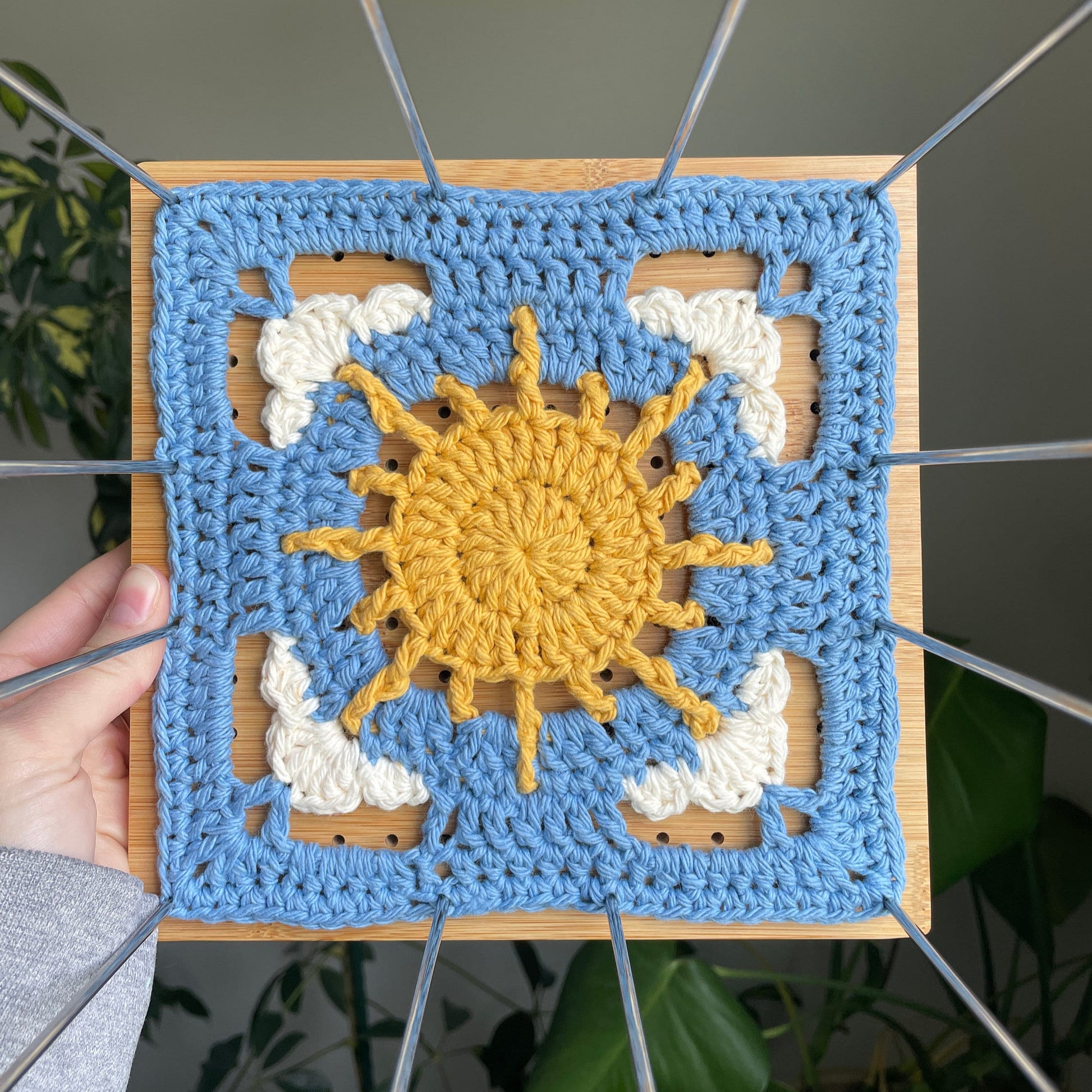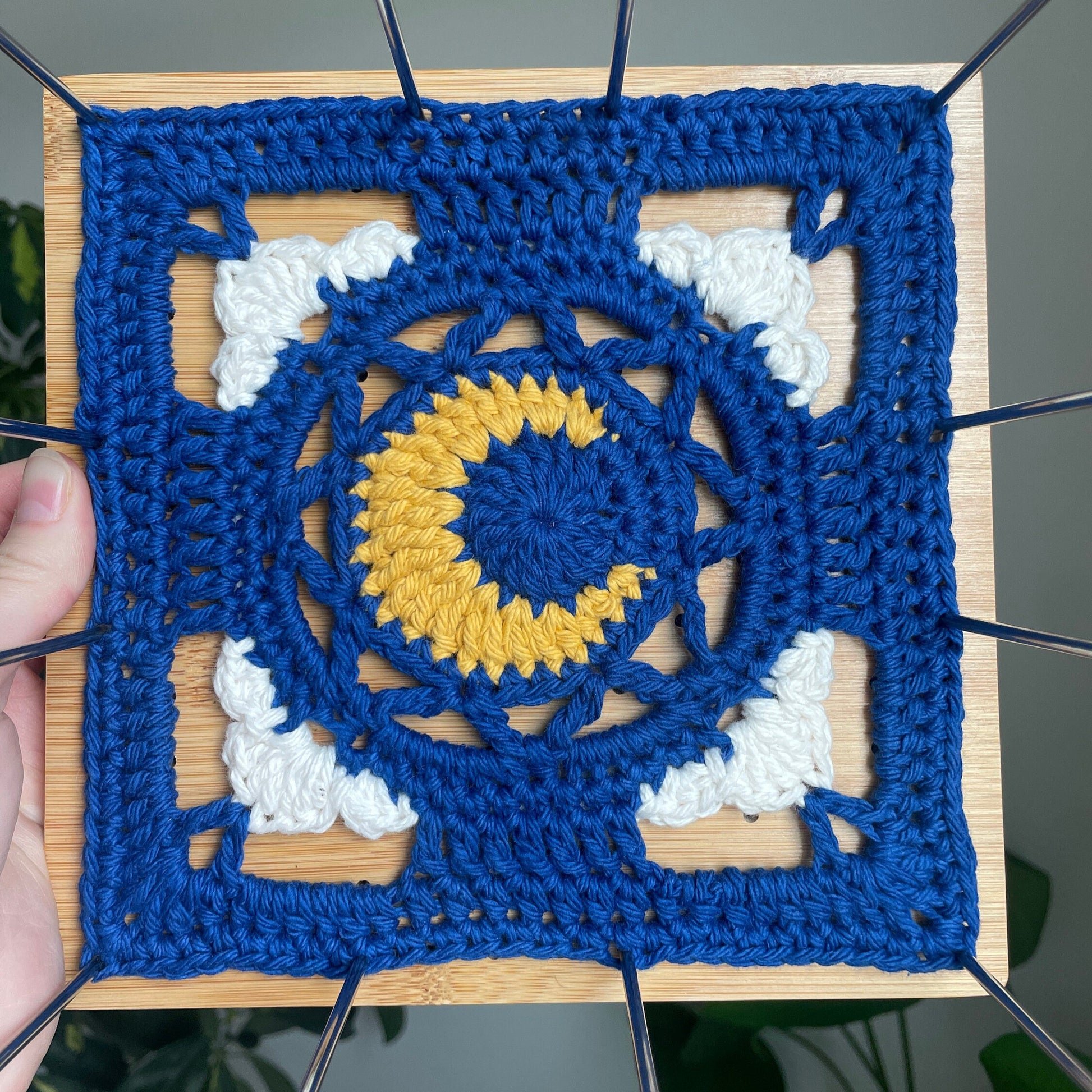 Includes 2 pdf patterns, a sun and moon version. All instructions are written in English using US crochet terms. Both granny squares end with the same amount of stitches making joining very simple and easy!